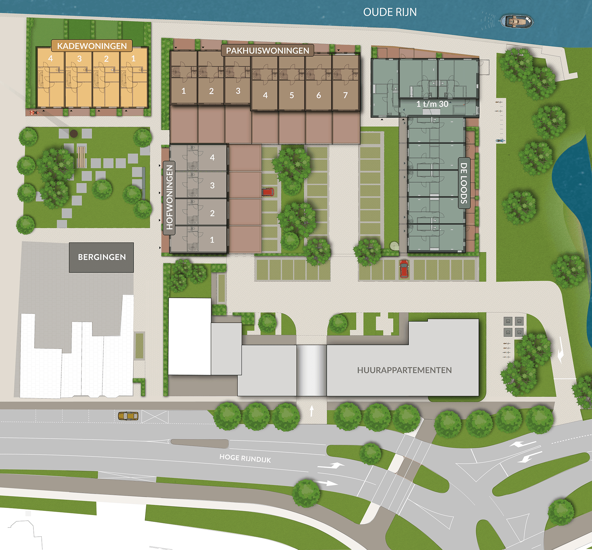 Droom jij van een pakhuis-woning aan het water? Dan kom je thuis in één van de 7 karakteristieke kadewoningen. Deze woningen van circa 180-187 m² zijn een ode aan de grachtenpanden die aan de Oude Rijn stonden. Hier combineren we de sfeer van weleer met het comfort van tegenwoordig. Er zijn veel indelingsmogelijkheden, denk bijvoorbeeld aan een werkruimte, extra badkamer en pantry voor een inwonend kind of een eigen gym op de bovenste verdieping.